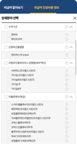 독감, 코로나19 등 백신 접종 비용부터 내시경, MRI, 1인실 비용까지 조회할 수 있습니다.