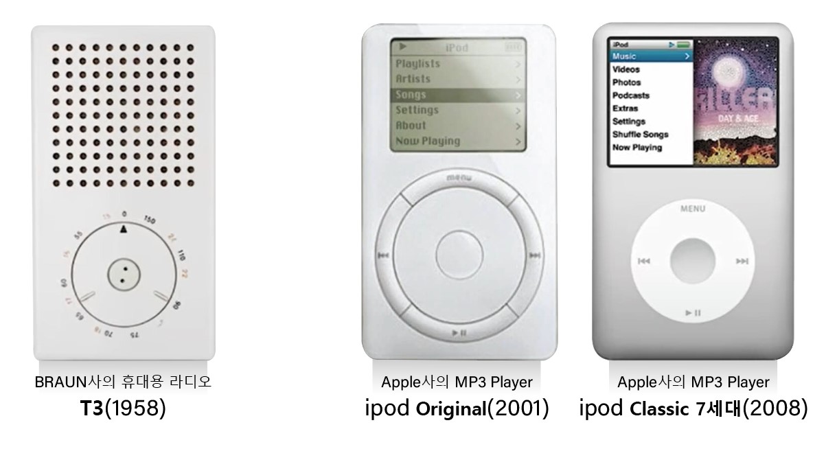 '디터 람스' 하면 늘 따라다니는 어젠다, "Less, but Better"에 대한 철학을 그의 일상을 통해 관찰할 수 있는 좋은 기회였다고 생각합니다. 그리고, 좋은 디자인이란 무엇일까요? 오늘은 애플의 전 디자인 책임자였던 조나선 아이브가 직접 영향을 받았다고 언급하여 다시 회자되고 조명을 받기도 한 디자이너 디터 람스와 그가 세운 디자인 철학에 대해 이야기해보고자 합니다. 미스터 브라운으로 불렸던 디터 람스는 사실상 브라운의 리즈시절을 만든 디자이너입니다. 조너선 아이브 역시 디터 람스 시절의 브라운 제품들의 열렬한 팬이었음을 밝힌 바 있었습니다. 지금의 브라운은 P&G계열이 되어 그리 특별할 것 없는 그저 그런 대중적인 전기면도기와 전동칫솔 같은 제품으로 널리 알려져 있지만, 질레트에 인수되기 전의 브라운은 뛰어난 기능과 미적 감각을 동시에 갖춘 제품들을 내놓는 핫한 브랜드 중의 하나였습니다. 그리고, 조너선 아이브는 그런 브라운의 열렬한 덕후였습니다. 그래서 지금의 애플의 제품을 보면 조너선의 디자인이 어딘가 브라운의 향기가 나는 것은 당연한 것일지도 모르겠습니다. 누구나 나를 미치게 하는 것에 영향을 받는 것은 당연하다 생각하니까요. 이런 브라운 제품들은 애플에만 영향을 준 것은 아닙니다. 사실상, 많은 제품들에 영향을 주었고 미니멀리즘과 슈퍼노멀 트렌드, 그리고 함께 등장한 제품들의 이면에는 티터 람스의 브라운의 영향력이 일정 부분 흐르고 있다고 봐도 과언이 아닐 것입니다. 한 예로 여기, 121개의 원으로 그린 도형의 집합이 있습니다. 여러분들은 이 그림을 보고서 어떤 게 느껴지셨습니까? 디자인을 함에 있어 모든 이들이 하는 말이 있습니다. "모방은 창조의 어머니다."라고. 맞습니다. 디터 람스의 덕후인 조너선 아이브가 애플에서 제작한 제품의 비교사진입니다.
