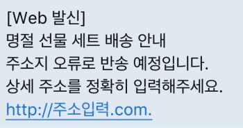택배 배송 안내, 연하장, 청첩장, 부고장 등도 링크를 무심코 눌렀다가 악성앱이 설치될 수도 있습니다. 모르는 번호로 온 문자는 늘 의심하고 경계해야 하며 알 수 없는 링크는 절대 누르면 안 됩니다.