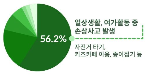 최근 3년간(20년~22년) 체험활동 중 어린이 손상 사고가 증가하고 있습니다. 숲 체험 중 넘어지며 다치거나, 스포츠 체험 중 발목을 접질리고, 요리실습 중 화상, 농장 체험 중 동물에게 물리는 등의 사고