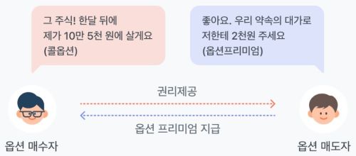 콜옵션(Call Option)이란, 미래의 특정 시점에 어떤 자산을 정해진 가격에 살 수 있는 권리를 의미합니다. 그러니 앞으로 해당 자산 가격이 오를 것으로 생각하는 사람들은 콜옵션을 매수할 것입니다. 대신에 이 콜옵션을 구매할 때는, 그 대가로 옵션 프리미엄이라는 비용을 지불해야 합니다.