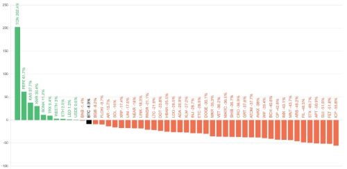 하지만 작년 말부터 시작된 비트코인 상승에도 알트시즌은 오지 않고 있습니다. 최근 90일 동안 암호화폐 시가총액 50위 기준 비트코인 상승률을 능가한 알트코인은 단 11개뿐입니다. 알트코인 대장 이더리움도 작년 10월 이후 한 번도 비트코인 상승률을 앞서지 못했습니다.
