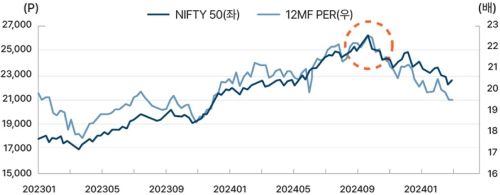 < 2024년 12MF PER 23배에 달했던 인도 주식시장 >