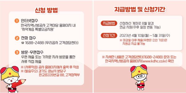 ① 온라인 신청 : 한국지역난방공사 홈페이지 ▶ 고객마당 ▶ 취약계층 특별요금지원