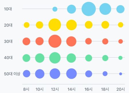 사람들은 언제 카페를 찾을까? 연령별로 방문하는 시간을 살펴보았습니다.