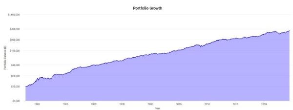 투자 예측 사이트 포트폴리오 비주얼라이저에서 미국 기준 1978년~2024년 7월까지 영구 포트폴리오로 운용한 결과를 예측하니, 연평균 수익률 7.97%를 기록했습니다. 최고 수익률을 냈던 해는 1979년. 수익률은 40%에 가까웠습니다.
