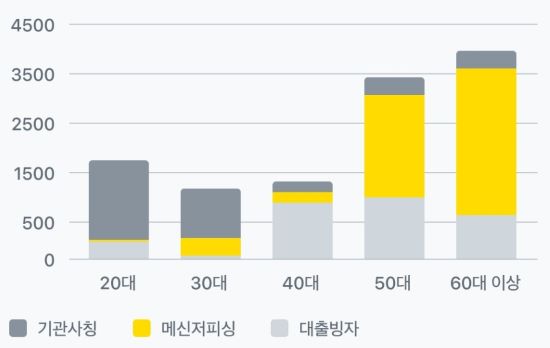 50대 이상은 특히 가족이나 지인을 사칭하는 메신저피싱에 취약합니다.