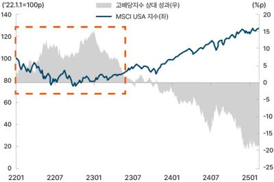 < 지수 상승 모멘텀이 크지 않은 시기, 고배당이 상대적 우위 >