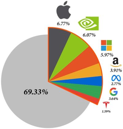 현재 M7은 S&P500 내에서 30%의 비중을 차지하고 있습니다. 즉, 이들의 주가가 많이 오르지 않으면 S&P500 지수 전체가 상승할 여력도 꽤 제한적이라는 말입니다.
