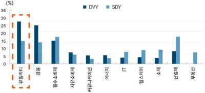 < 유틸리티 비중이 놓은 SDY, DVY >